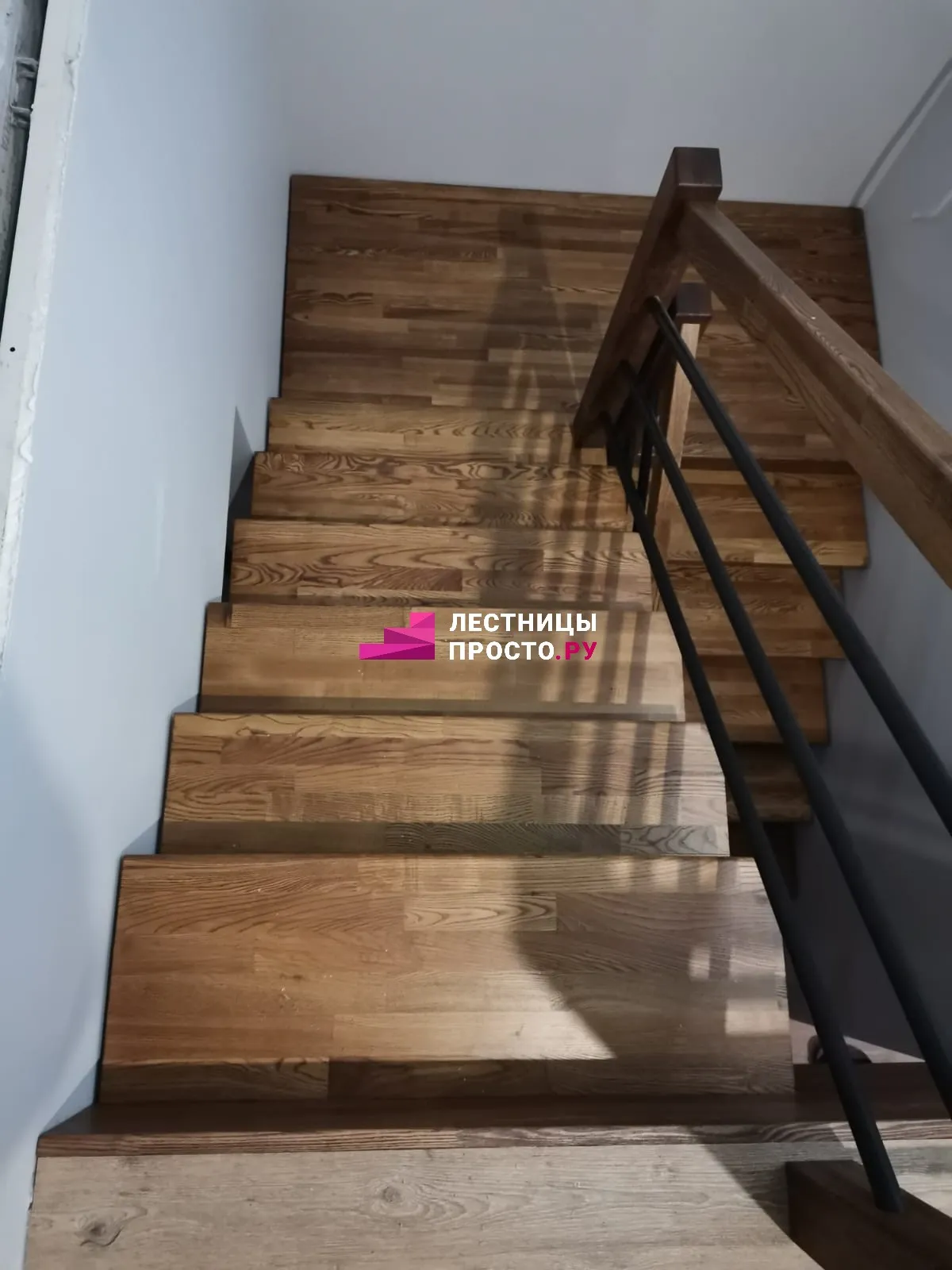 Лестница на центральном каркасе 100х100, ступени ясень ЛП 700