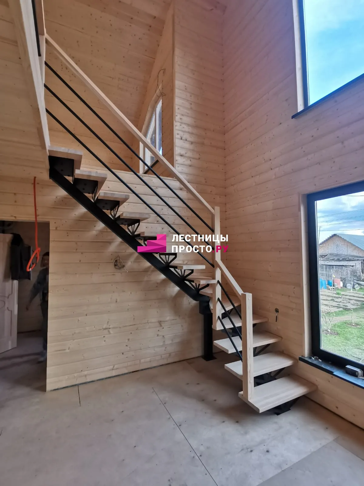 Современная лестница LP металлическая с ограждением тринити п-образная в частном доме